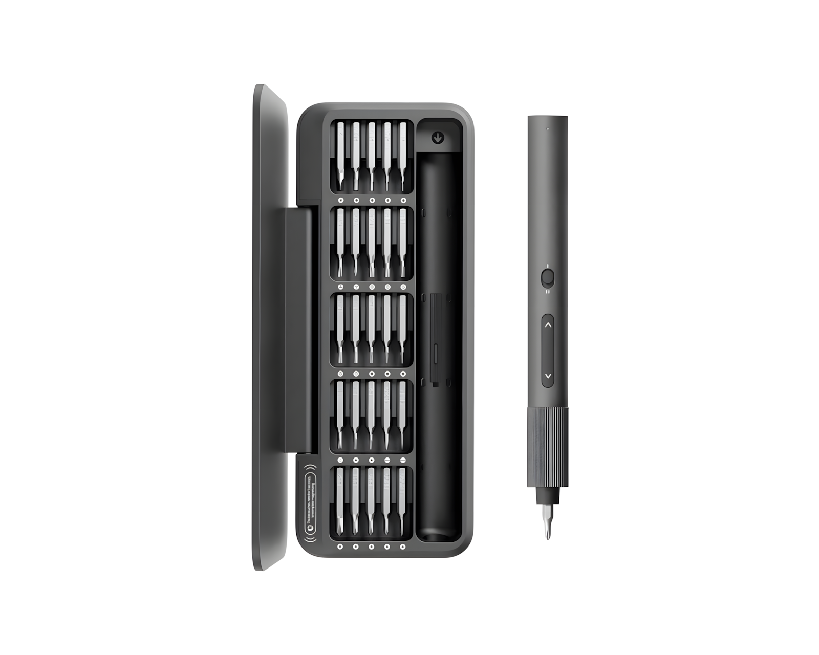Precision Screwdriver ADV Set is an electric precision screwdriver from HOTO that offers efficiency and accuracy for automated repairs. It features a motor that reaches up to 170 revolutions/min, two selectable torque settings, and a shadow-free LED light to improve visibility when working in tight spaces. The set includes 25 S2 steel bits and a built-in magnetizer to facilitate bit changes.The screwdriver is designed with a non-slip grip area that provides a comfortable and stable hold, even during prolonged use. The anti-slip coating applied ensures that the grip remains secure. The torque settings of 0.05 and 0.2 Nm allow for tailored screw driving for sensitive components, which is crucial for precision work. The built-in LED light provides illumination in dark areas, increasing accuracy when driving screws.
