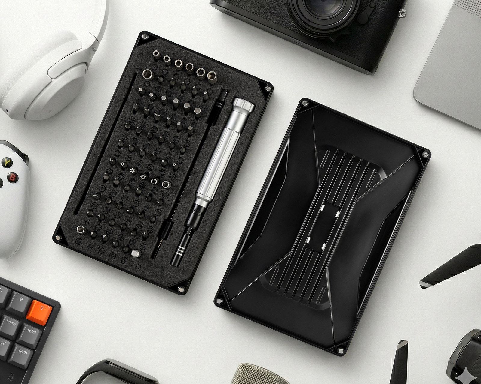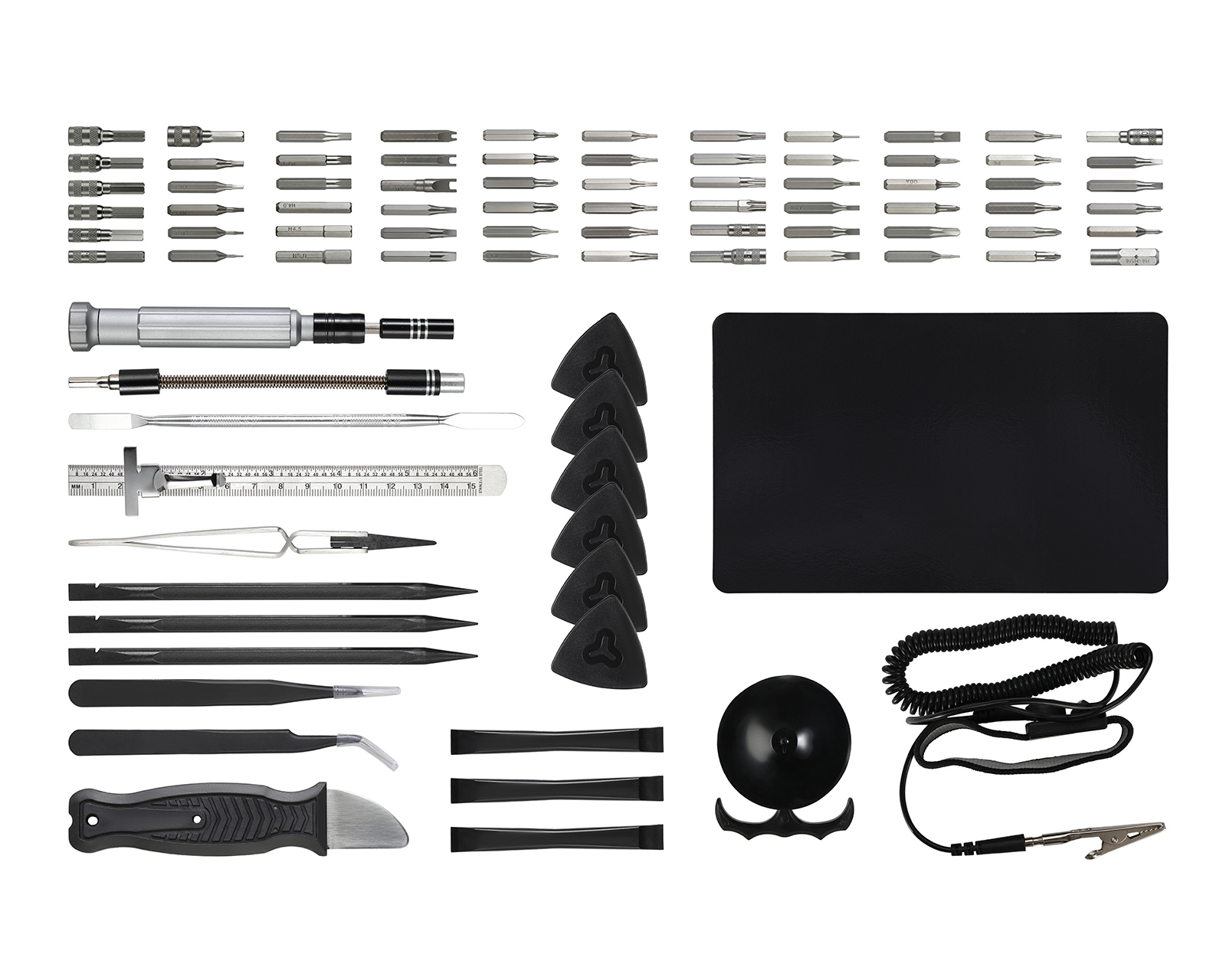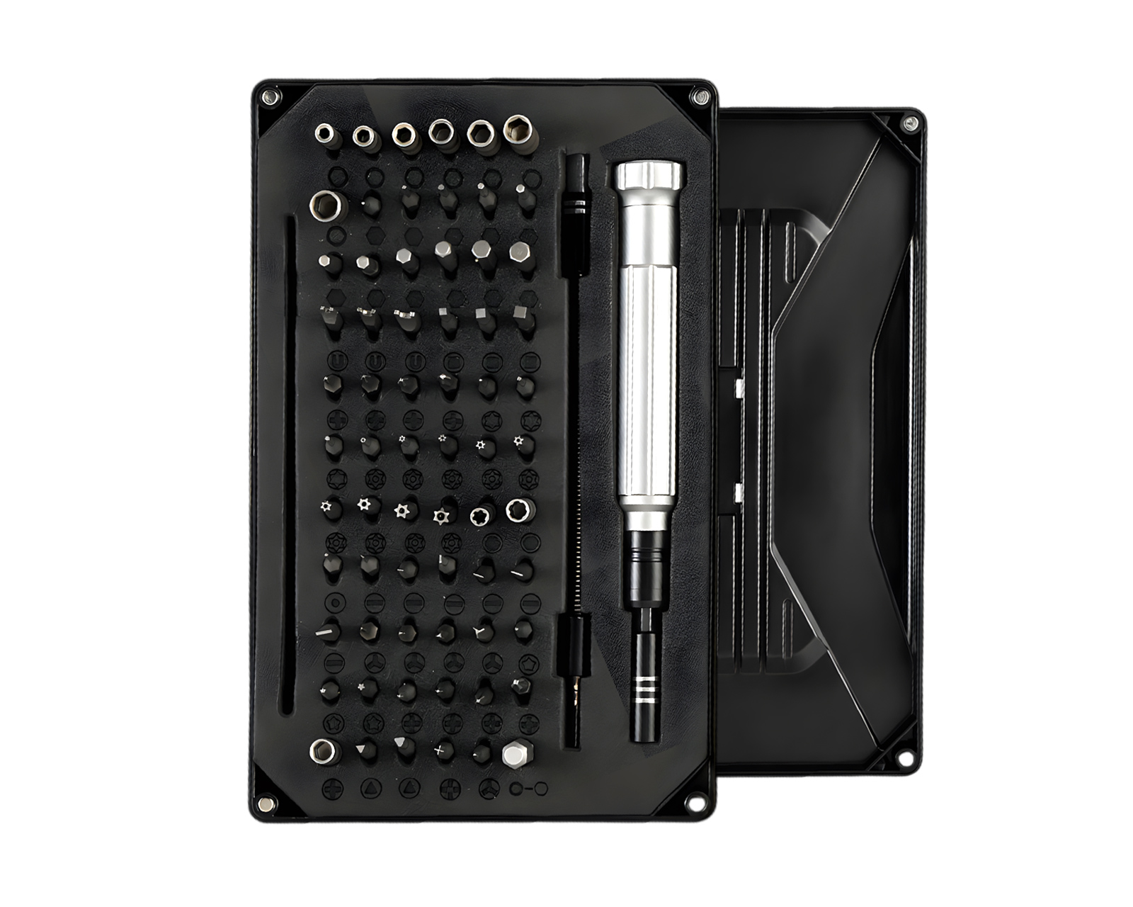 This precision screwdriver set and repair kit for electronics from MaxMount is a complete 89-piece tool set designed to help you repair everything from smartphones to game consoles and laptops with professional results. The kit includes high-quality CRV precision bits that cover all imaginable needs – especially for tricky repairs of iPhones, MacBooks, laptops, and other modern electronics.The ergonomic aluminum handle features a textured anti-slip surface and is resistant to rust, providing both precision and comfort during long work sessions. In addition to the bits, the kit contains essential specialty tools such as tweezers, pry tools (spudgers), and an anti-static wristband, which protects sensitive components during disassembly. Everything is delivered in a sturdy and organized case that makes it easy to keep track of every little part.