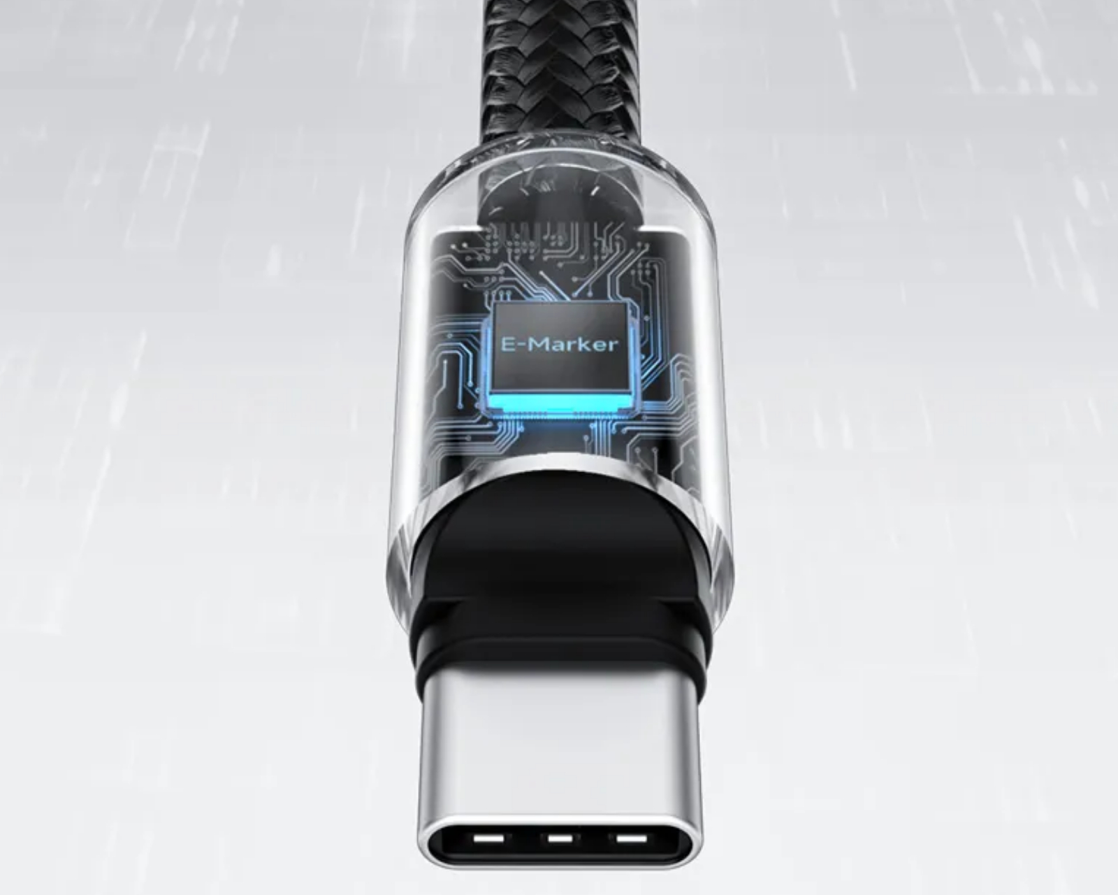 The cable's braided body is made of high-density materials that provide strength and resistance to wear, featuring a robust and anti-tangle structure.