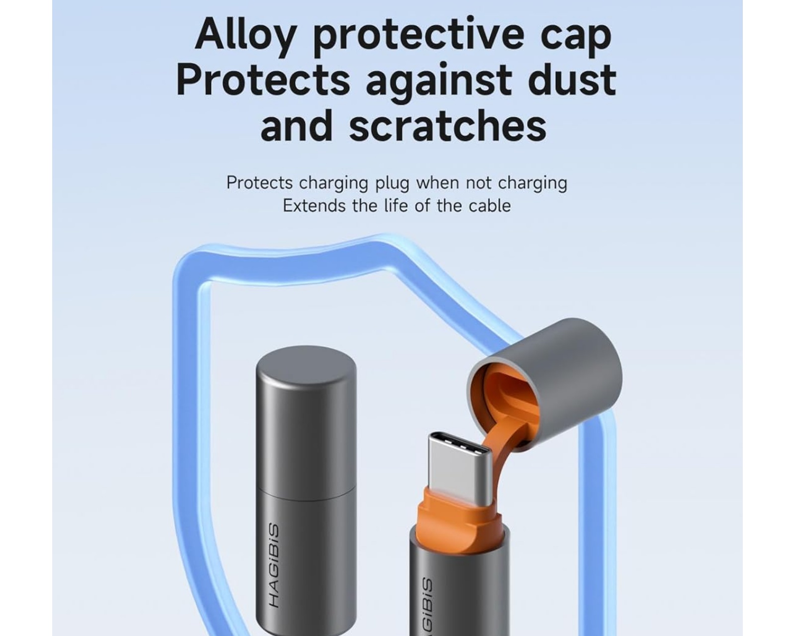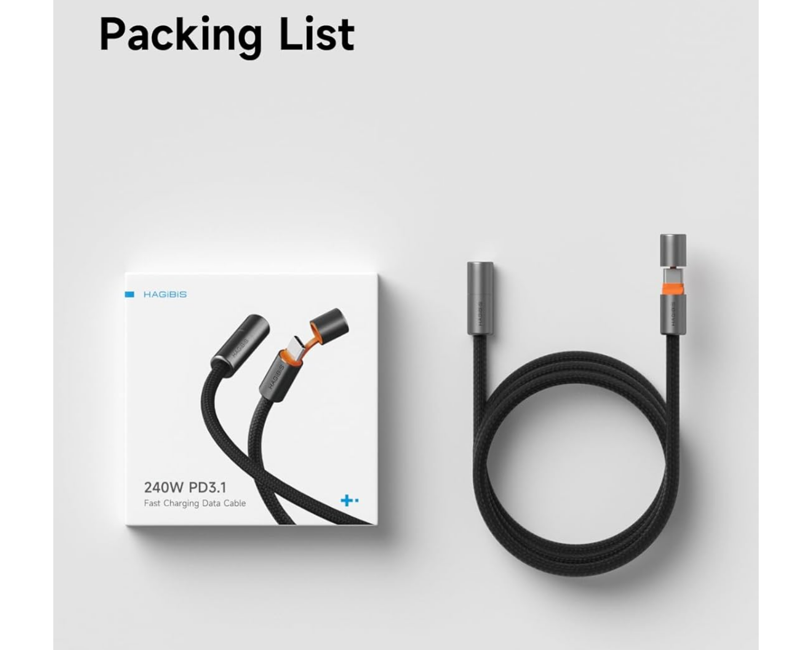 Hagibis USB C cable is a charging cable that offers fast charging and data transfer. The cable has a maximum power of 240W and a data transfer speed of up to 480Mbps. It is a USB Type C cable suitable for a wide range of devices including smartphones and laptops. The versatile cable is especially useful for gamers, professionals, and anyone who needs a fast and reliable connection.This cable is equipped with a protective cap, which prevents dust and scratches on the contact point when not in use. Made with high-quality materials and technology, it supports PD3.1 fast charging protocol and is backward compatible with previous versions. The E-Marker chip enables intelligent device identification for safe and efficient charging. The Hagibis cable is available in various lengths and colors to suit different needs and preferences.