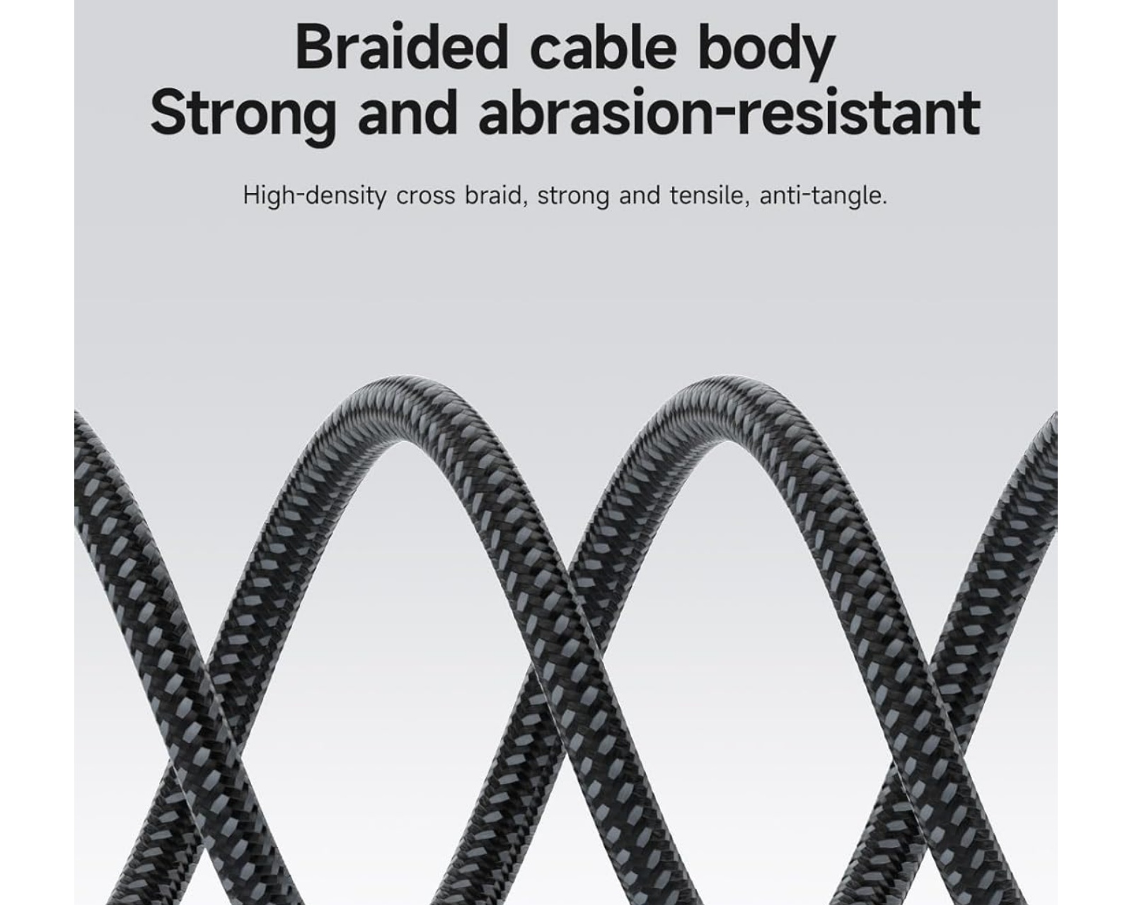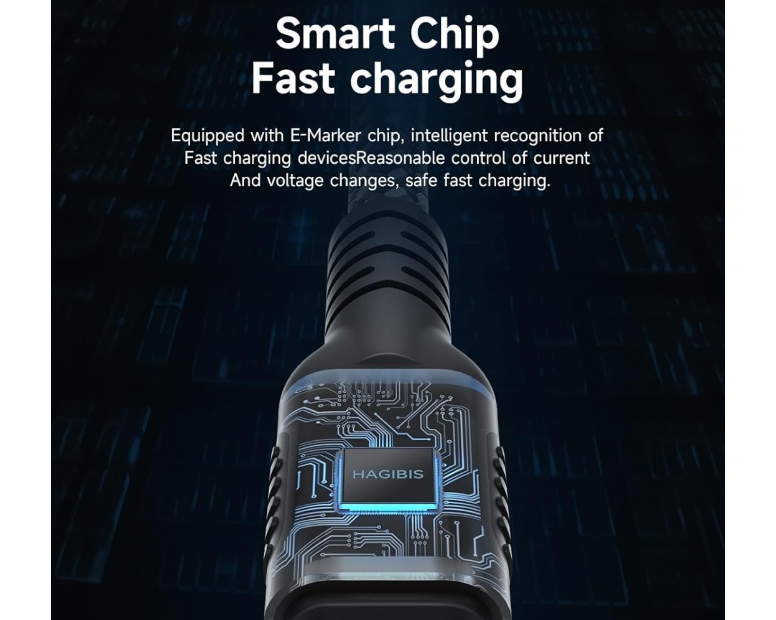 The woven wire gives the cable high durability and resistance to tangling thanks to the tight cross-weaving. Equipped with a smart E-Marker chip for fast charging that intelligently detects devices and adjusts current and voltage for safe charging, as well as a soft and anti-interference graphene shielding that has high electrical conductivity.
