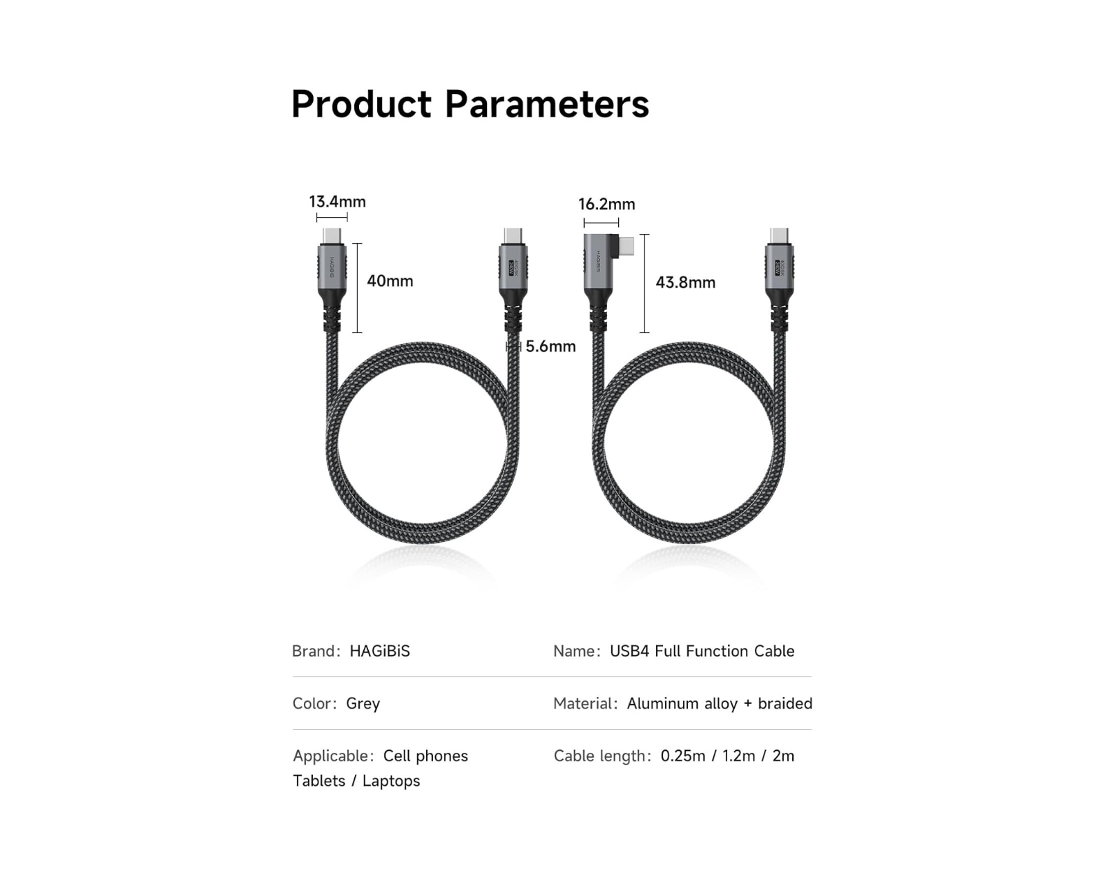 USB4 Cable Black - 1.2M is a data cable from Hagibis that offers high-performance features for fast charging and data transfer. The cable supports 240W fast charging according to the PD3.1 standard, which makes it backward compatible with previous versions, PD3.0 and PD2.0. With a length of 1.2 meters, it is designed to meet the needs of users of modern devices such as mobile phones, computers, and game consoles.The cable enables 8K/60Hz high-definition video signal transmission via the DisplayPort protocol, making it ideal for gamers and professional users who demand high image quality. It has a data transfer rate of up to 40Gbps, allowing large files to be transferred in just a few seconds. The 90° bend design prevents hand blockage during use, providing better ergonomics.