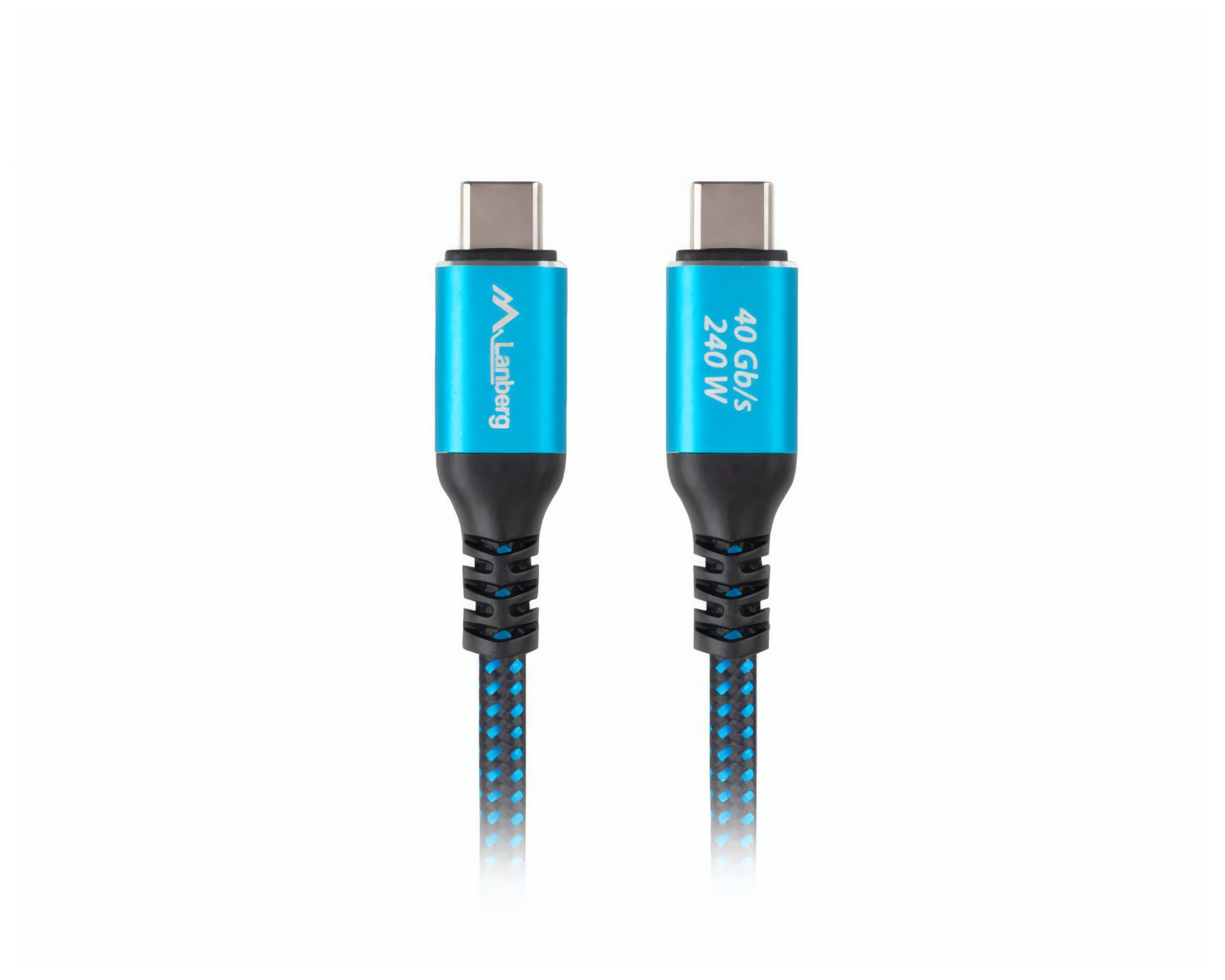 USB-C 4.0 to USB-C Cable 240W 8K 60HZ is a cable from Lanberg that offers high transfer capacity and powerful charging. It is designed for use with devices requiring fast data transfer and high resolution, making it suitable for both home use and professional environments. The cable is 1.5 meters long and can transfer up to 240 watts of power.This cable adheres to USB4 standards and allows for transfer speeds of up to 40 Gbps. It supports resolutions up to 8K at 60 Hz, which is ideal for use with high-resolution displays. The cable's double shielding construction minimizes signal loss and ensures stable transmission. It is made of copper for optimal conductivity and features a robust cotton braid and aluminum connector that contribute to its durability and resistance to damage.
