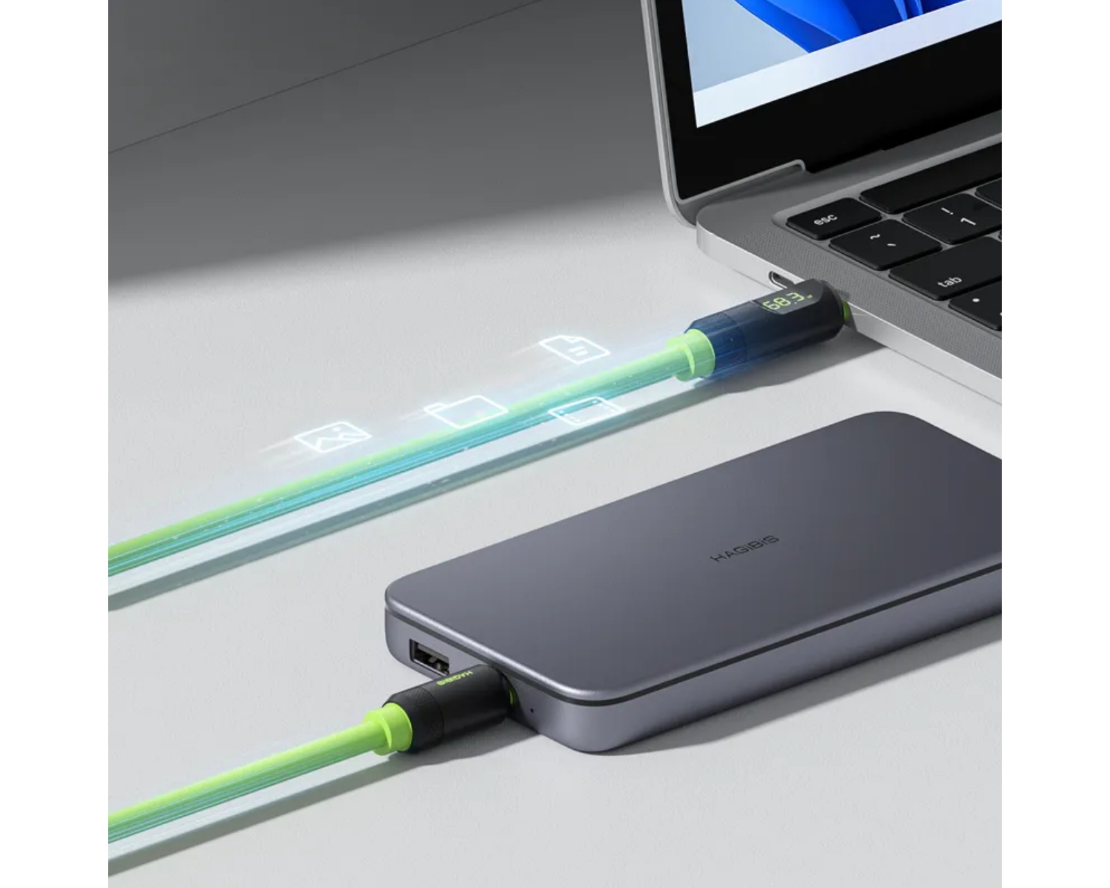 USB4 Cable SX02 1M is a USB-C cable from Hagibis that offers fast and efficient charging as well as data transfer. The cable supports charging speeds of up to 240W (48V 5A) and is compatible with PD3.1, ensuring it works with both modern and older devices. It can be used to charge everything from smartphones to laptops.The cable is designed to support UHD resolution and allows you to connect a laptop to an external monitor with a resolution of up to 8K@60Hz or two 4K@60Hz displays simultaneously, provided that the devices support DP Alt Mode. With a transfer speed of up to 40Gbps, following the USB4.0 standard, users can quickly move large files, including music and movies. The cable is also backward compatible with USB4 devices that support 20Gbps.
