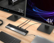 The docking station also comes with two HDMI sockets, one of which supports an impressive 4K resolution, enabling connection to high-resolution displays for an enhanced visual experience. In addition, there is a 3.5 mm jack port for microphones and headphones, making it easy to manage audio.