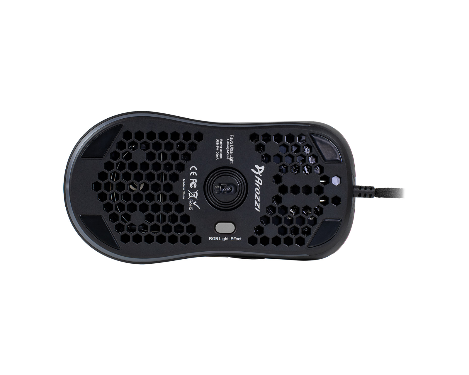Favo Ultra Light Gaming Mouse is a gaming mouse from Arozzi that combines low weight and high performance. With a DPI of up to 16000 and a Pixart 3389 sensor, the mouse enables precision and speed that are crucial in intense gaming situations. It is equipped with six buttons and offers a USB connection for stable and direct response.The mouse's design is carefully crafted to minimize weight, making it weigh only 74 grams. It also features a scroll wheel that facilitates navigation and quick access to various functions. The lighting is RGB, which can be customized according to the user’s preferences. The switches are of the Omron type, known for their reliable performance and long lifespan.