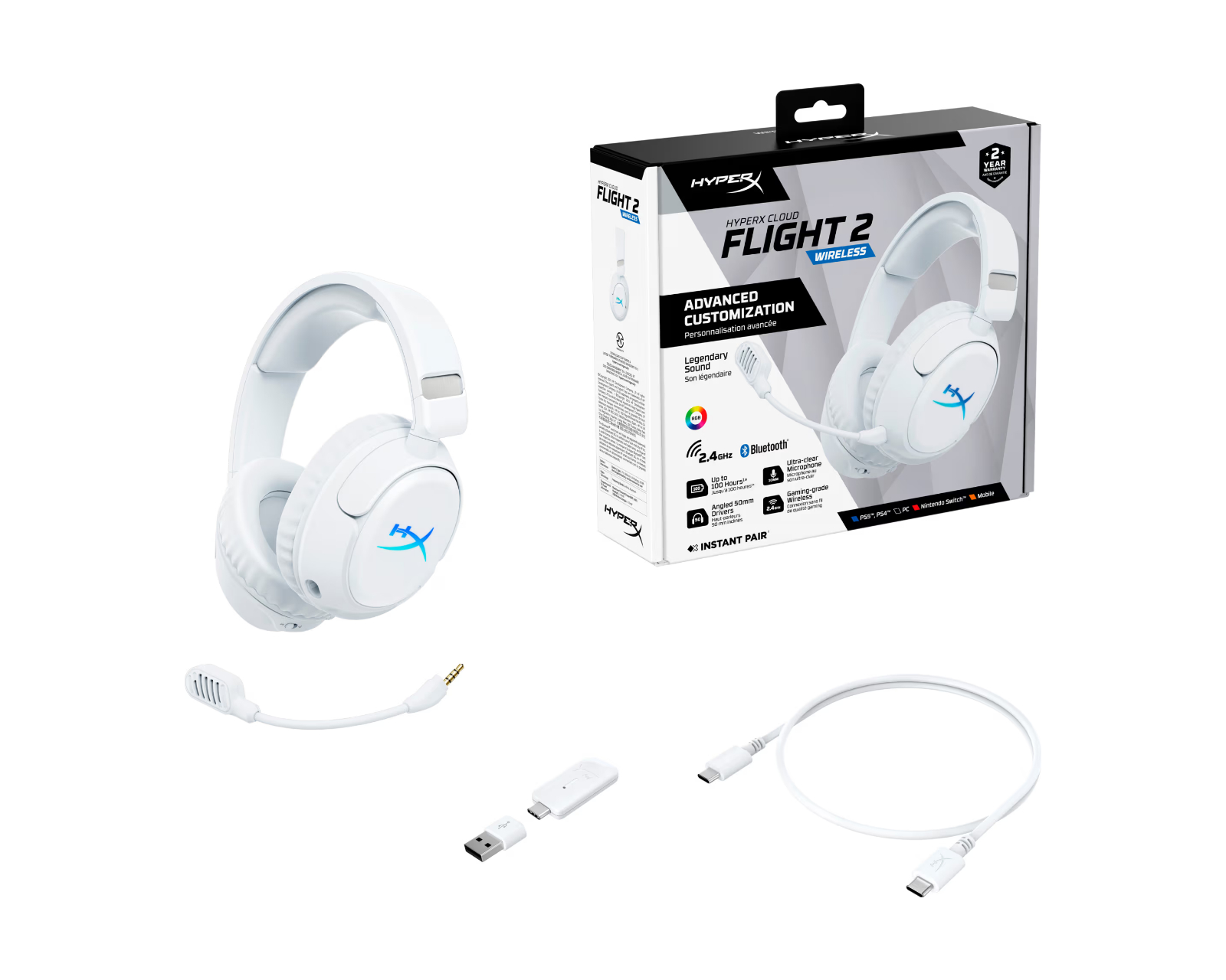 Cloud Flight 2 is a wireless gaming headset from HyperX, designed to provide gamers with a seamless experience with multi-platform compatibility and dual connection modes. With powerful 50 mm drivers and an exceptional battery life of up to 150 hours, this headset is optimized for long gaming sessions and offers both clarity and precision in sound experience. The dual microphone solution ensures clear communication during gameplay.The build quality of Cloud Flight 2 is excellent, featuring soft memory foam and 90-degree rotating ear cups, which facilitate storage and comfort during prolonged use. The dual wireless connection via 2.4 GHz and Bluetooth 5.3 provides flexibility in connections and low latency. RGB lighting and magnetic interchangeable plates allow the headset to be customized for personal style, while HyperX NGENUITY software offers additional options to adjust lighting and sound settings.