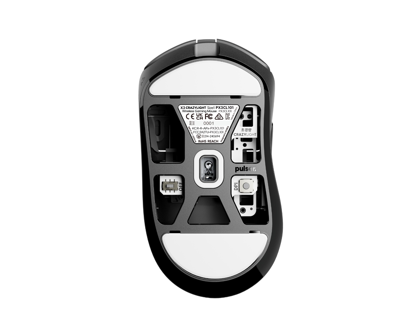 X3 CrazyLight is a wireless gaming mouse from Pulsar that weighs only 43g. The ultra-lightweight construction minimizes hand fatigue during long gaming sessions. Equipped with an 8K polling rate and XS-1 sensor, it offers fast, accurate, and responsive control. The mouse is specifically designed for gamers seeking high performance and comfort.The build quality of the X3 CrazyLight is high, with a focus on durable components. It features optical switches rated for 100 million clicks, contributing to its long-lasting reliability. The XS-1 sensor supports up to 32,000 DPI and 750 IPS tracking, providing precise control and rapid response. The mouse is designed for an ergonomic grip, optimized for right-hand use, ensuring comfortable operation and supporting different grip styles. For additional customization, gamers can adjust DPI settings in increments of 10 via a 32-bit ARM processor.