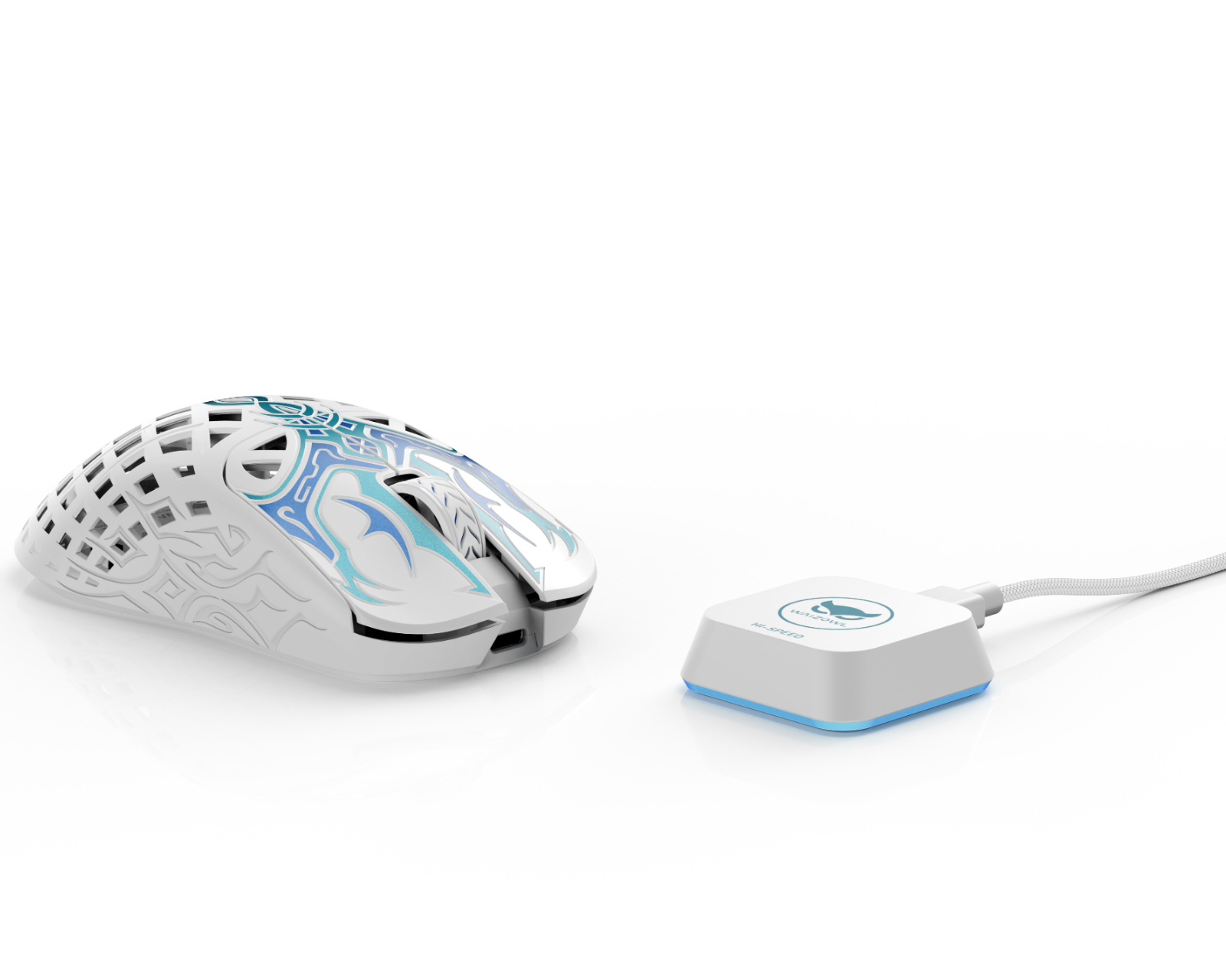 TRIAINA is a wireless gaming mouse from Waizowl that combines extreme lightweight with cutting-edge technology. Weighing only 49 grams and featuring one of the world's fastest charging solutions with a 4C battery, it takes the gaming experience to a new level by offering a full charge in just 22 minutes.The mouse's construction in fiberglass and polycarbonate contributes to a rigid and durable design without compromising weight. The custom 3950 HAWKEYE sensor enables pixel-perfect tracking and stability, providing players with accurate control during intense gaming moments. The ergonomic low-profile design is optimized for various grip styles, maximizing comfort during longer gaming sessions. TRIAINA also offers impressive battery life, up to 170 hours at 1K polling rate, to support long uninterrupted gaming sessions.