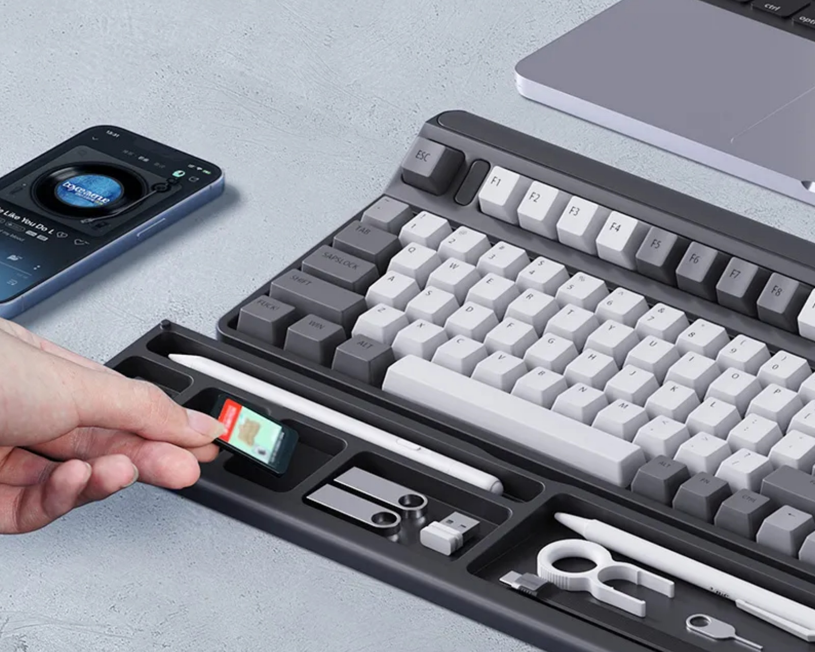 Tangent board wrist support with storage bag is a wrist support from Hagibis, designed for use during computer work. It offers partitioned storage that facilitates the management of small items on the desk, contributing to a structured workspace. The product is specifically designed to provide ergonomic support during long typing periods.The wrist support has a soft and elastic construction, made of high-quality leather-like material and filled with carefully selected high-quality sponge material. It provides a pleasant feel and resistance to deformation over time. Its sloped design ensures a natural relaxation of the wrist, reducing pressure during use. The wrist support fits well in office environments, where it provides natural support and increases comfort during work.