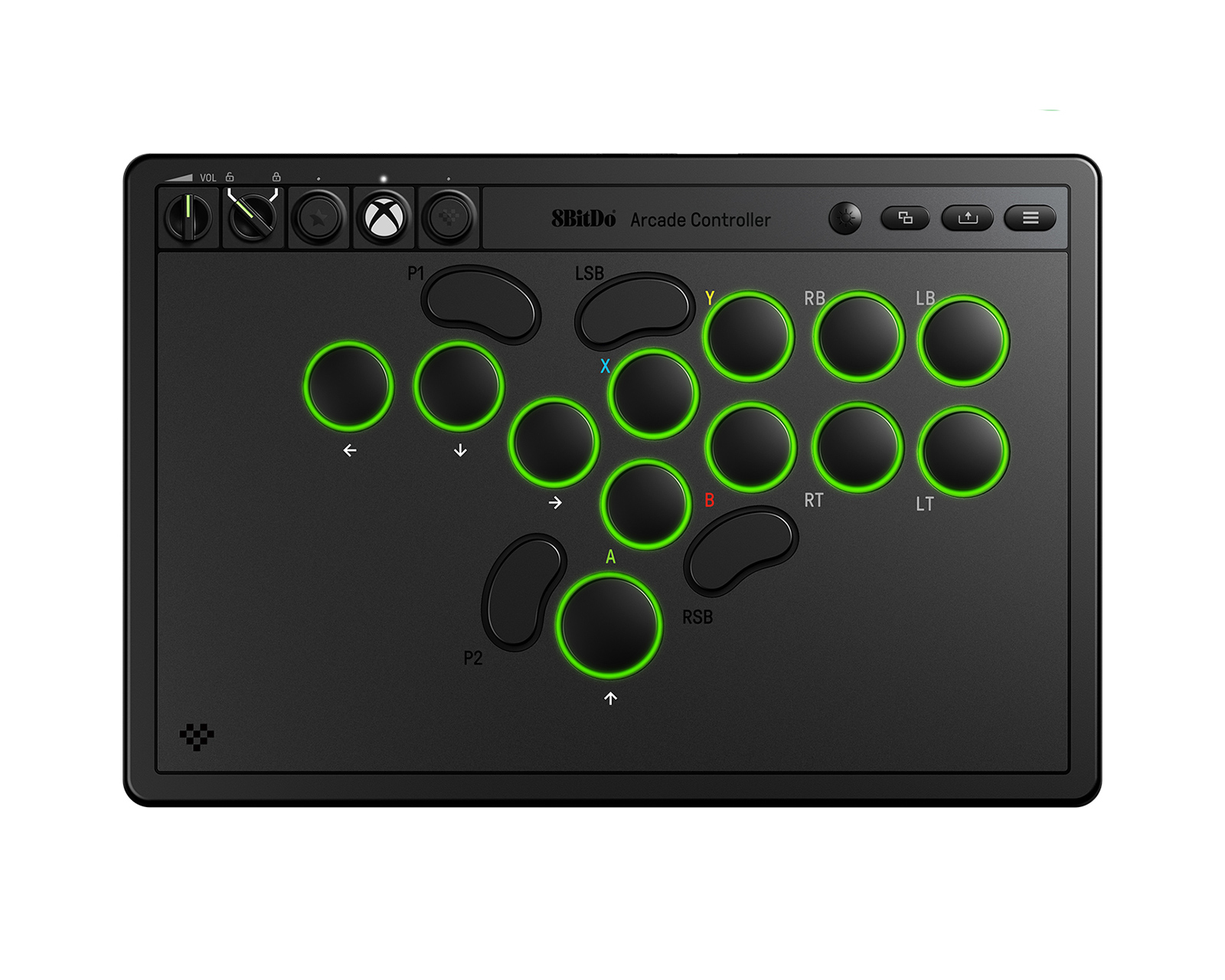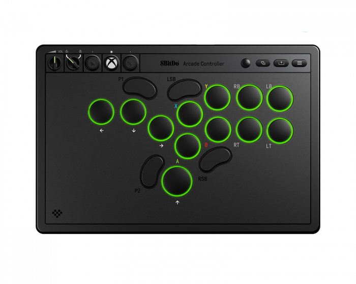 8BitDo Arcade is an all-button arcade controller from 8BitDo, designed for Xbox and PC. It offers both 2.4G wireless and wired connectivity, ensuring stable and low latency during gaming. The controller has a compact layout and is primarily aimed at gamers who prefer button layouts over joystick-based systems.The controller features two programmable buttons that can be remapped via an independent control panel, giving players the ability for quick adjustments. Equipped with Kailh Wizard low mechanical switches, it enables fast and precise registration of button presses. Additionally, it is hot-swappable, meaning components can be swapped without soldering. RGB lighting, a 3.5 mm headphone jack with volume control, as well as support for SOCD cleaning and tournament lock are also included. All configuration is easily done via 8BitDo Ultimate Software to customize buttons and profiles according to personal preferences.